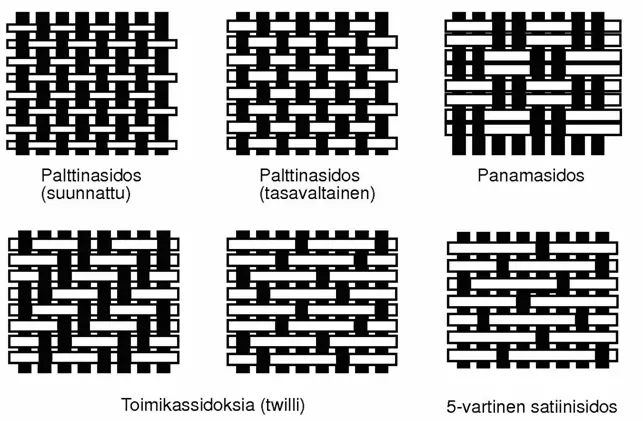 Lasikuitukankaat ovat ristiinkudottuja ja voivat olla tasavaltaisia tai suunnattuja. Yleisiä sidoksia ovat palttina, toimikas (twill) ja satiini. Kudosten paino ja leveys valitaan käyttökohteen mukaan. Palttina on stabiili ja helppo käsitellä, twill muotoutuu paremmin kaareviin pintoihin, satiini tarjoaa sileän pinnan. Kevyempi kangas sopii ohuisiin, tarkkaa pintaa vaativiin tuotteisiin. Raskaampi kudos tarjoaa paremman rakenteellisen lujuuden.